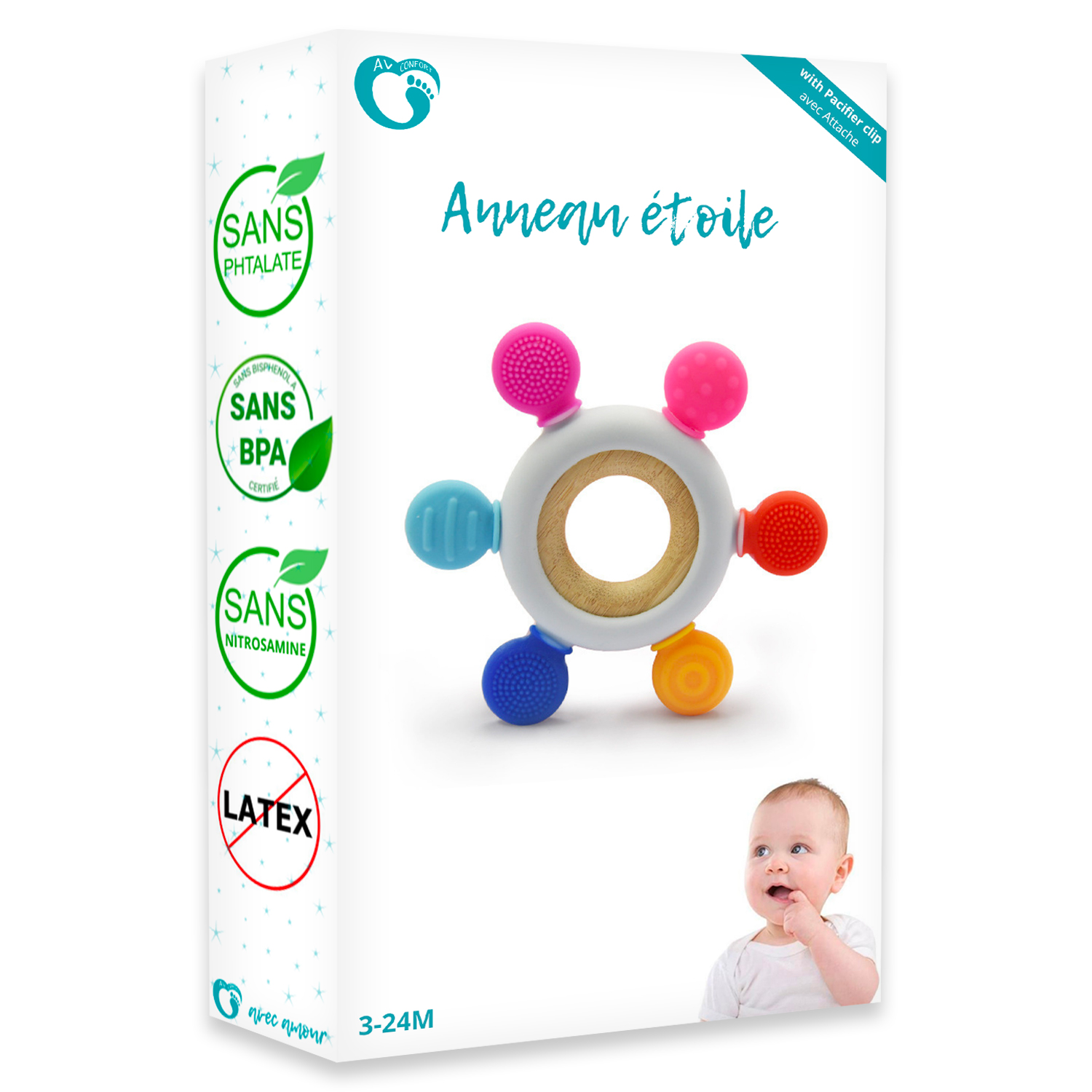 Ne laissez pas la dentition de votre bébé être une source d’inconfort. Offrez-lui le soulagement dont il a besoin avec notre Anneau de Dentition en forme d’Étoile.